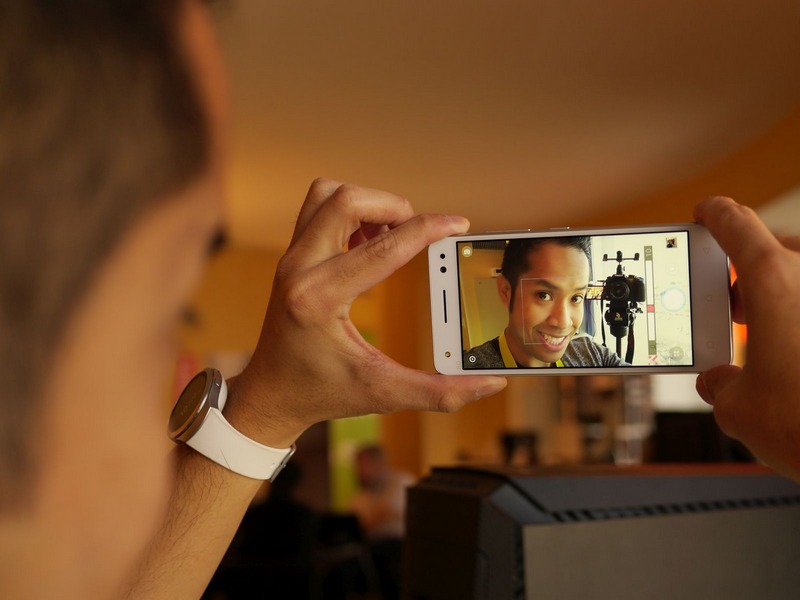 Máy tích hợp sẵn nhiều chế độ chụp ảnh như chạm để chụp, nhận diện khuôn mặt và biểu tượng "V", cho phép chụp hình ngay cả khi không cầm điện thoại, tính năng làm đẹp cho các bức ảnh selfie chỉ bằng một động tác trượt đơn giản.