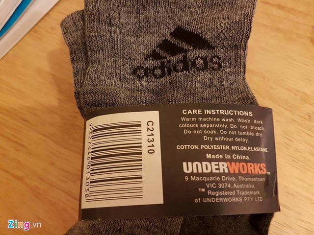 Tuy nhiên, bao bì gói 4 đôi tất lại ghi rõ sản phẩm này là của một doanh nghiệp Australia được sản xuất tại Trung Quốc. Khi được hỏi về mâu thuẫn này, chủ sạp trên cho hay bao bì là của một loại tất khác, chị nhập riêng tất và bao bì rồi đóng lại thủ công tại nhà nên không có dòng "Made in Vietnam" trên bao bì.