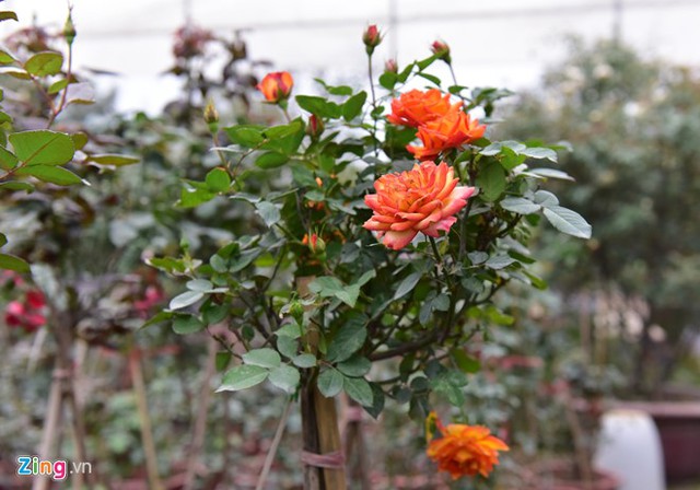 Hồng Juliet có hoa gần như quanh năm, đặc biệt khi thời tiết mát. Một chậu hoa như thế này có giá 1,5 triệu đồng đang được nhiều người mua về chơi Tết.