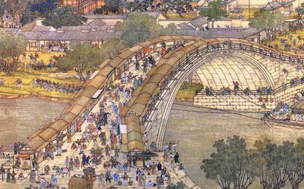 Tuy nhiên, phần nổi bật nhất của bức họa "Thanh minh thượng hà đồ" lại nằm ở vị trí ở gần trung tâm, nơi có một cây cầu trải dài được bắc qua sông.
